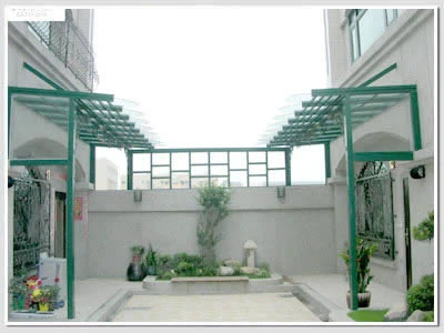 電動玻璃門、百葉窗、鍛造遮雨棚、